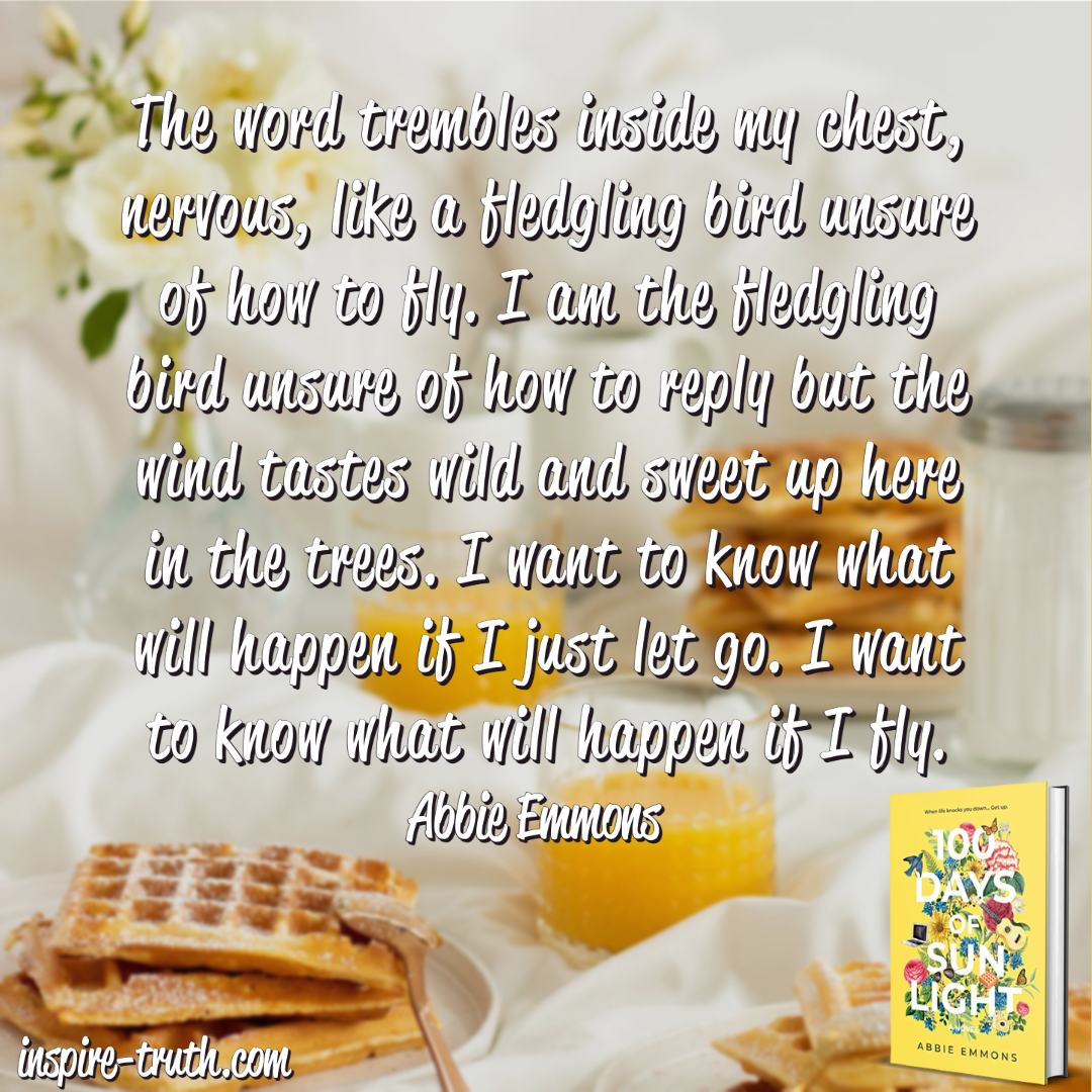 “The word trembles inside my chest, nervous, like a fledgling bird unsure of how to fly. I am the fledgling bird unsure of how to reply, but the wind tastes wild and sweet up here in the trees. I want to know what will happen if I just let go. I want to know what will happen if I fly.” ~ Abbie Emmons