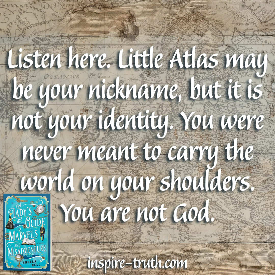 “Listen here. Little Atlas may be your nickname, but it is not your identity. You were never meant to carry the world on your shoulders. You are not God.” ~ Angela Bell
