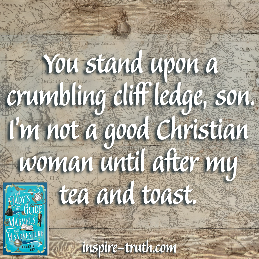 “You stand upon a crumbling cliff ledge, son. I’m not a good Christian woman until after my tea and toast.” ~ Angela Bell