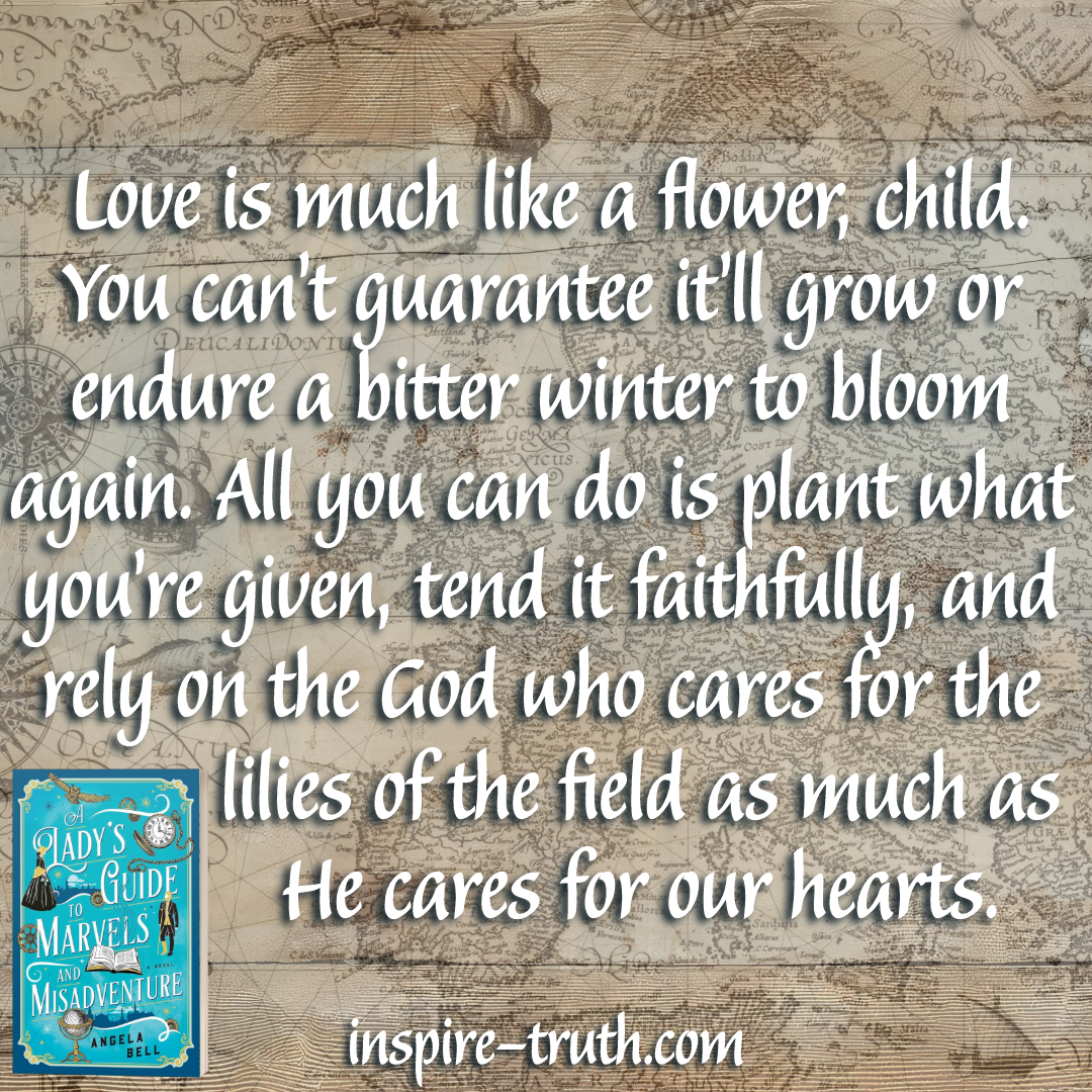 - “Love is much like a flower, child. You can’t guarantee it’ll grow or endure a bitter winter to bloom again. All you can do is plant what you’re given, tend it faithfully, and rely on the God who cares for the lilies of the field as much as He cares for our hearts.” ~ Angela Bell