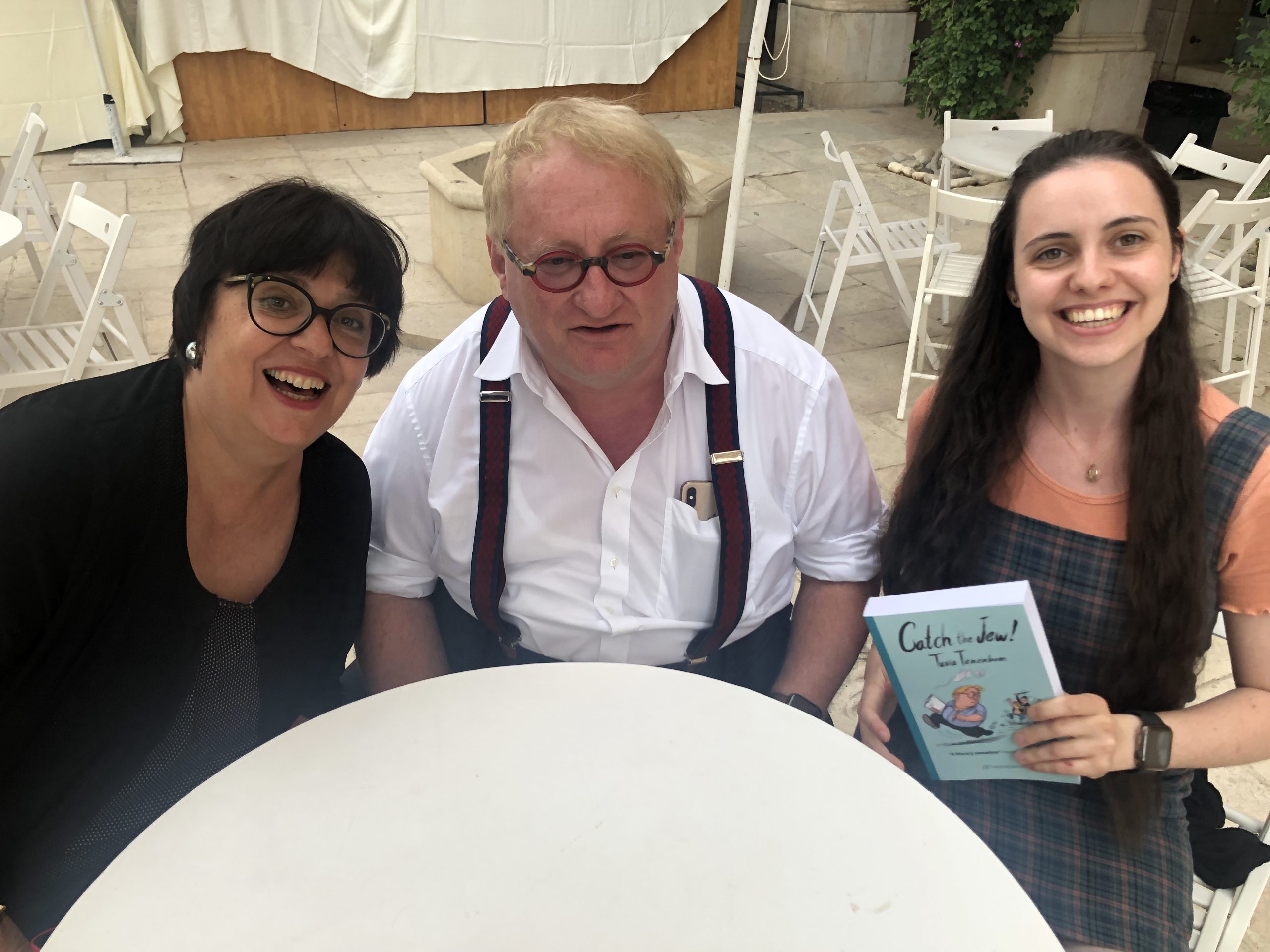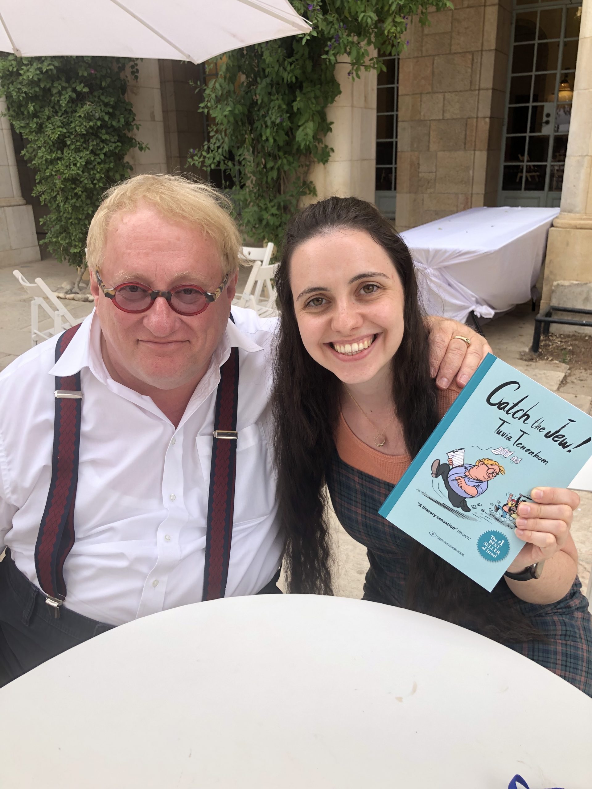 During our search, we were joined by an American author who began asking Tuvia about his work. The moment he mentioned the name of his best-selling book, Catch the Jew! I knew who he was. Though I hadn’t read the book (yet!) I distinctly recalled the cover — in which Tuvia is indeed an animation character — after it was recommended to me by none other than Dita Kraus, the Librarian of Auschwitz!