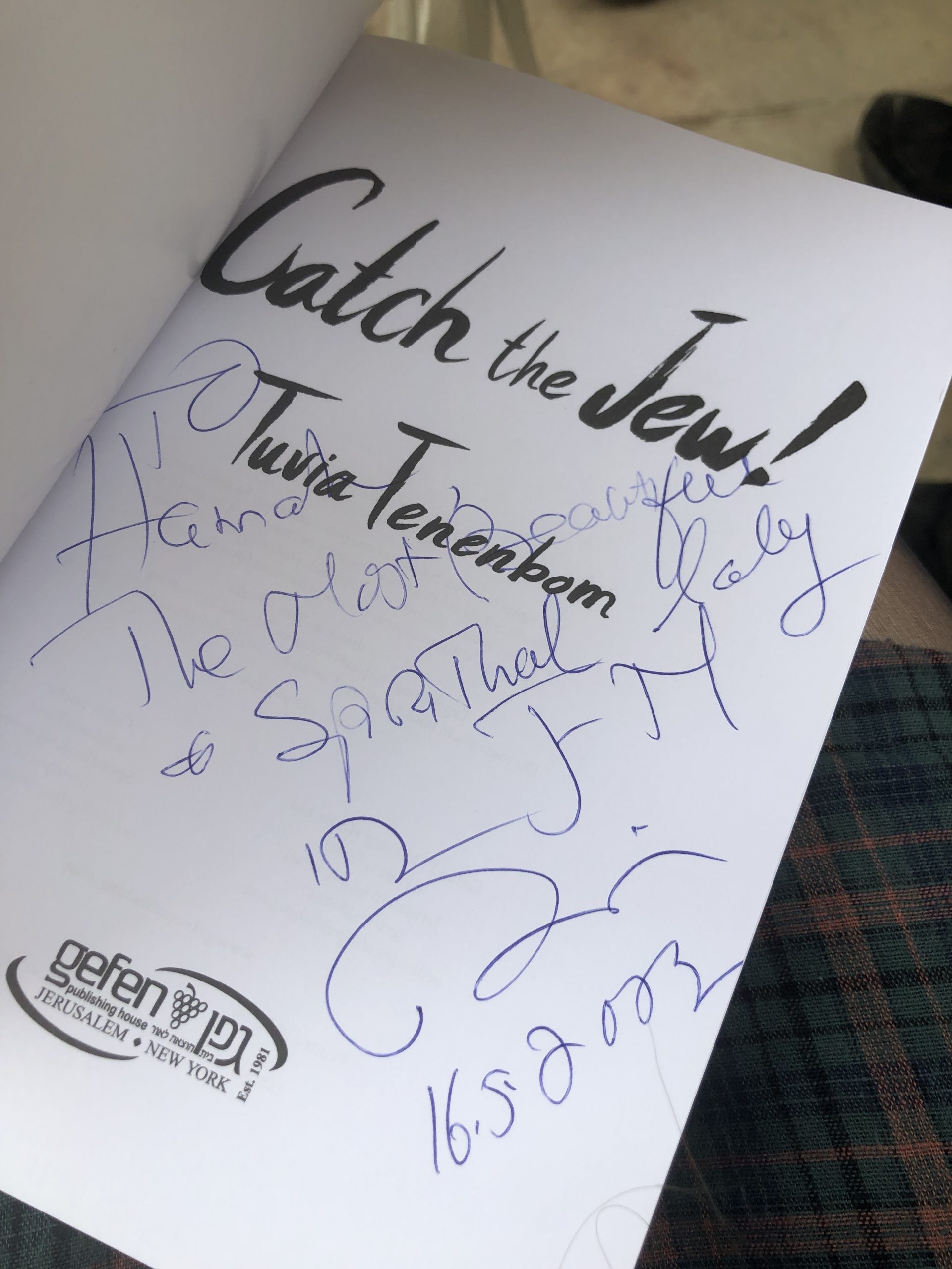 Exiting the auditorium at the end of the session, I found Tuvia and Isi and asked if he had time for me to purchase his book so he could sign it. “Of course,” he enthused. So, off I went to find the bookstore they’d recommended.