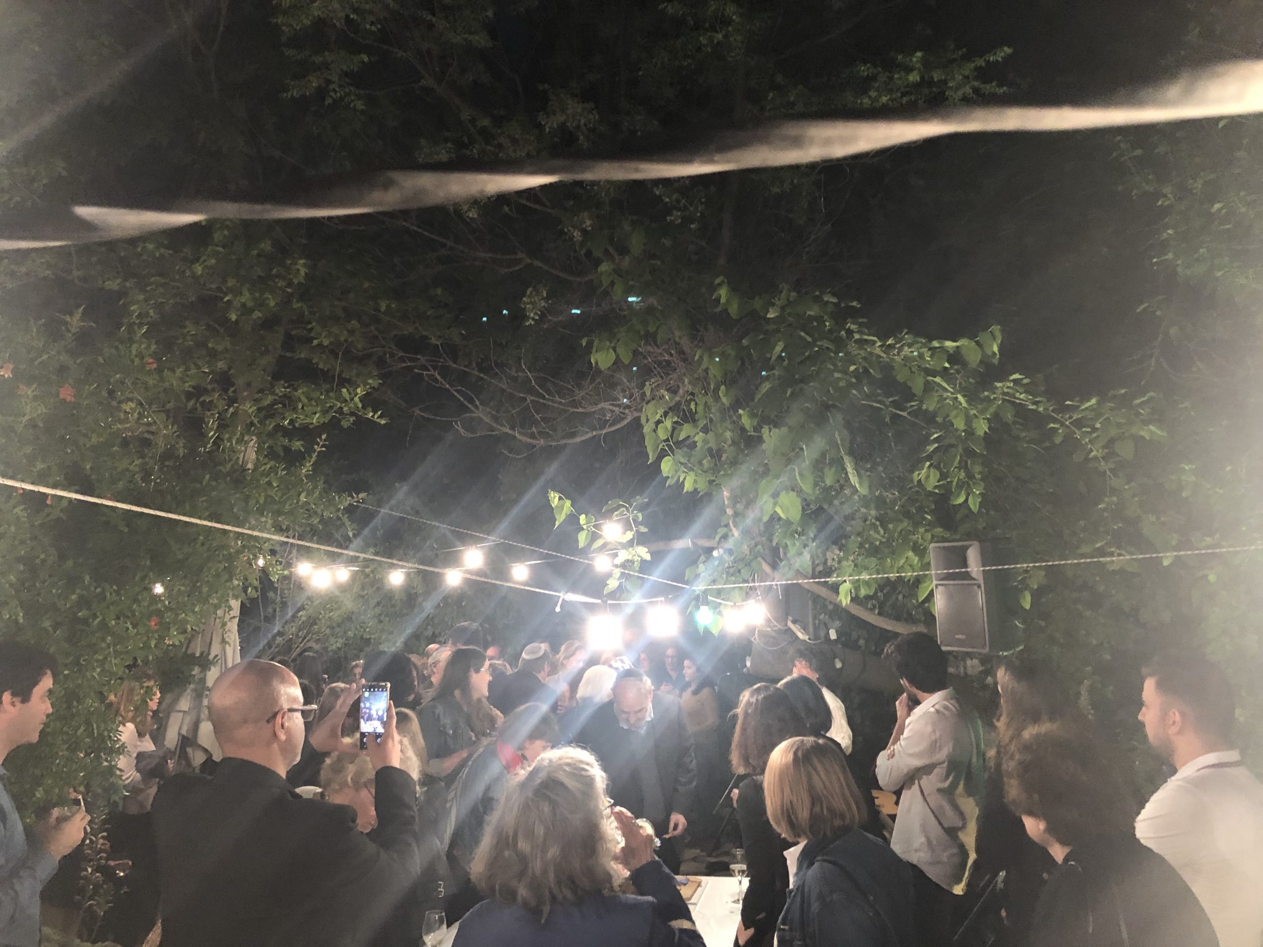 Just as Tuvia was finished, Christian Kracht, a German author we’d met during our search for lunch, returned with an Israeli publisher to speak to the Tenenboms. Not wanting to interrupt, I said I’d leave them to it, but Isi insisted I stay. Feeling like a fish out of water, I sat quietly and listened as Tuvia asked about getting his next book translated into Hebrew. It was a fascinating conversation. Before their departure, Christian mentioned a cocktail party happening later that evening. Graciously, the invite was extended to me, with Christian remarking, “I sure hope to see you there.”