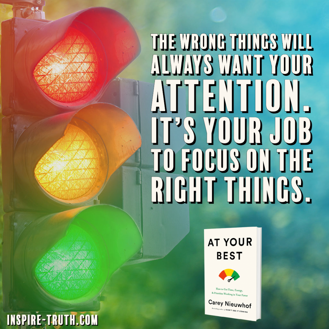 - “The wrong things will always want your attention. It’s your job to focus on the right things.” ~ Carey Nieuwhof
