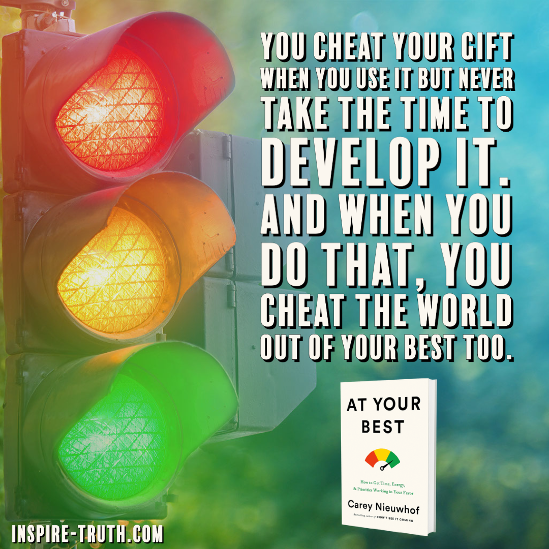 - “You cheat your gift when you use it but never take the time to develop it. And when you do that, you cheat the world out of your best too.” ~ Carey Nieuwhof