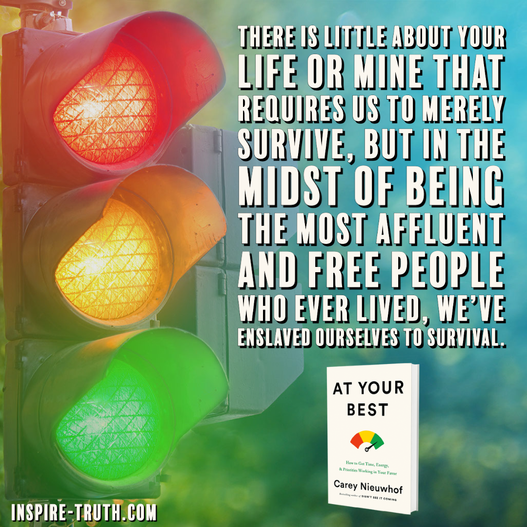 - “There is little about your life or mine that requires us to merely survive, but in the midst of being the most affluent and free people who ever lived, we’ve enslaved ourselves to survival.” ~ Carey Nieuwhof