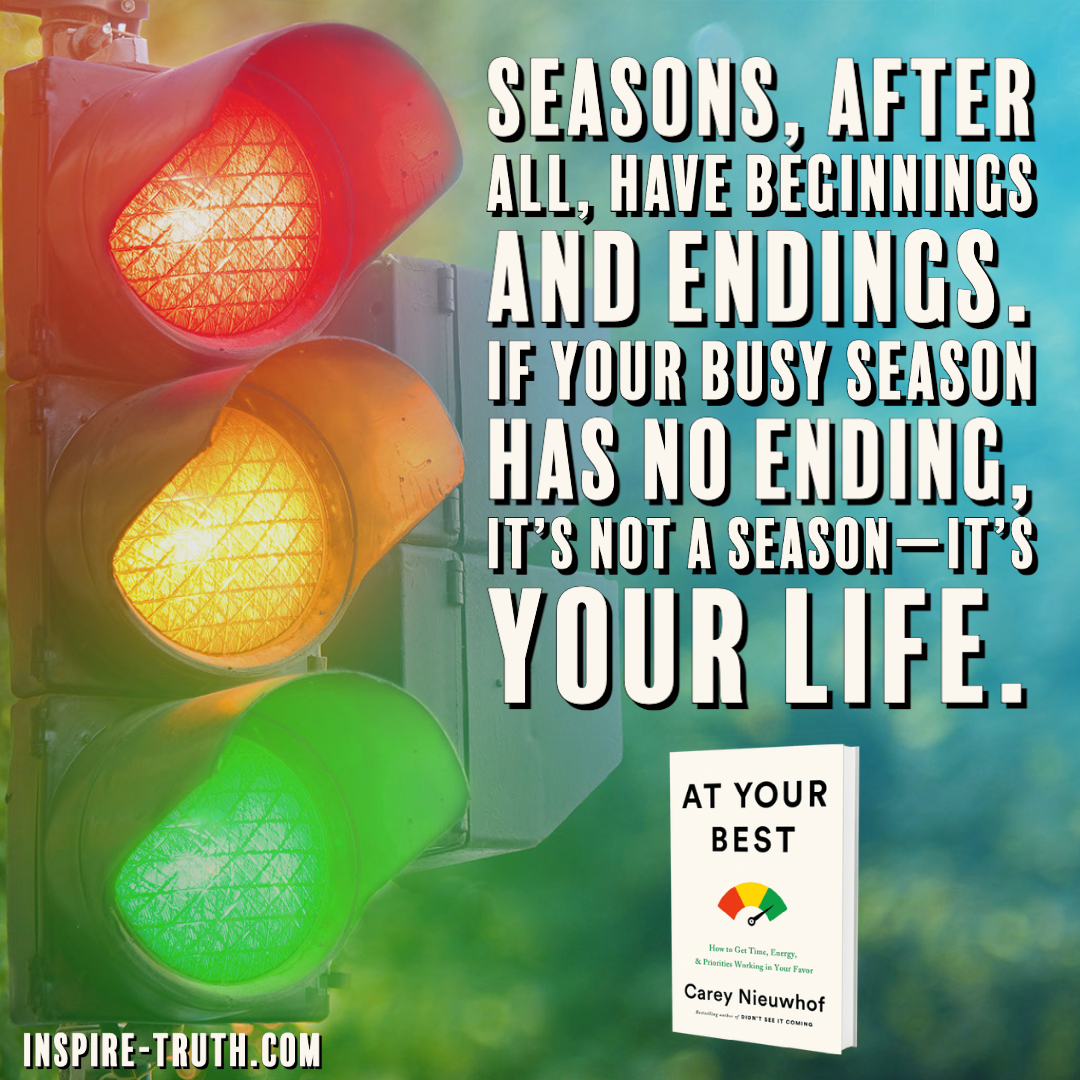 - “Seasons, after all, have beginnings and endings. If your busy season has no ending, it’s not a season—it’s your life.” ~ Carey Nieuwhof