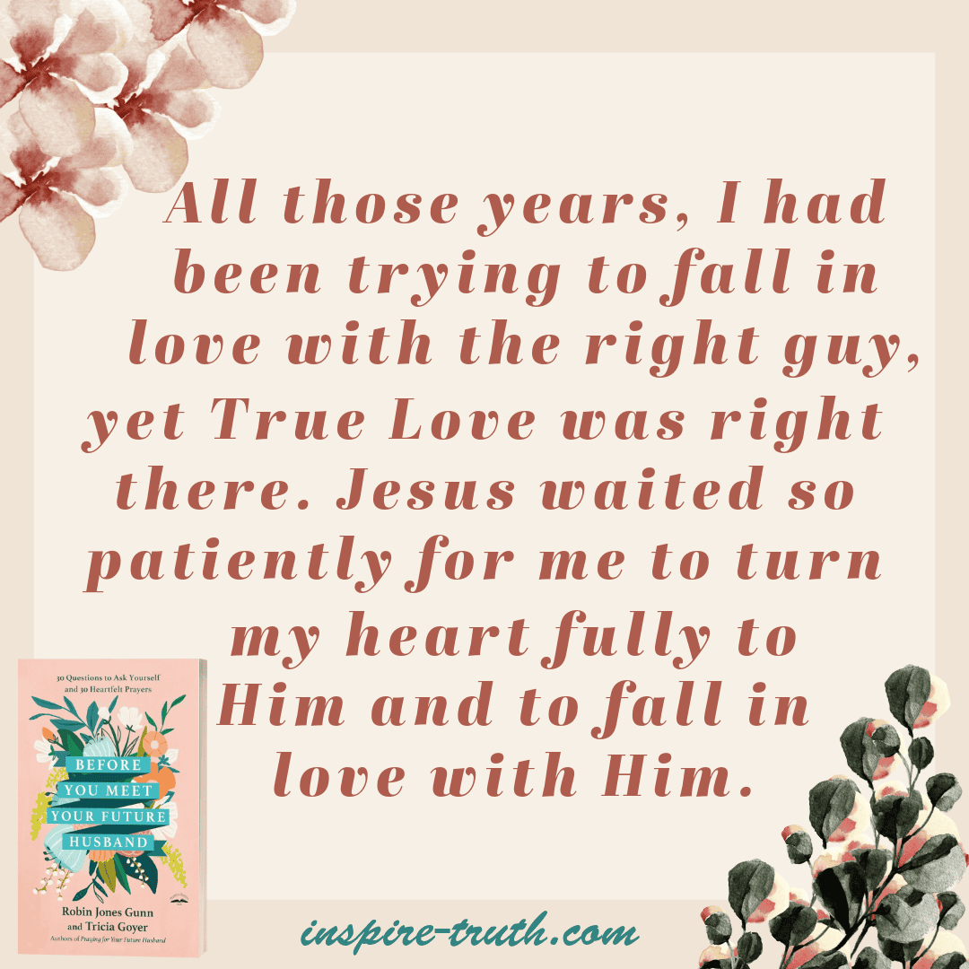 “All those years, I had been trying to fall in love with the right guy, yet True Love was right there. Jesus waited so patiently for me to turn my heart fully to Him and to fall in love with Him.” ~ Robin Jones Gunn and Tricia Goyer