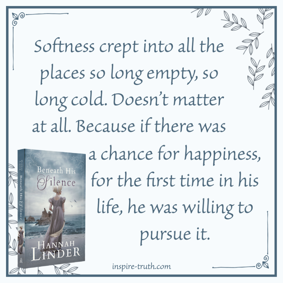 - “Softness crept into all the places so long empty, so long cold. Doesn’t matter at all. Because if there was a chance for happiness, for the first time in his life, he was willing to pursue it.” ~ Hannah Linder