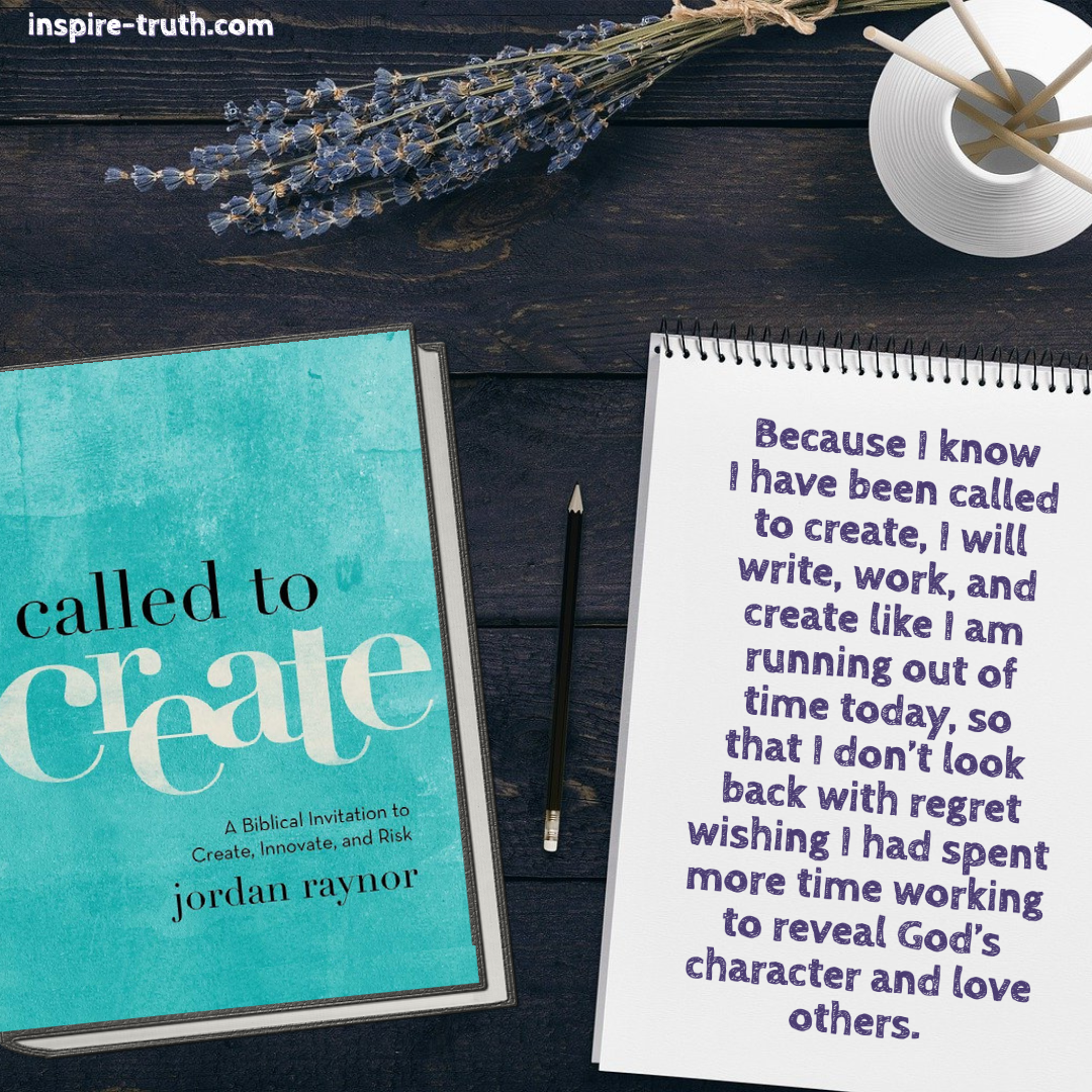 - “Because I know I have been called to create, I will write, work, and create like I am running out of time today, so that I don’t look back with regret wishing I had spent more time working to reveal God’s character and love other.” ~ Jordan Raynor
