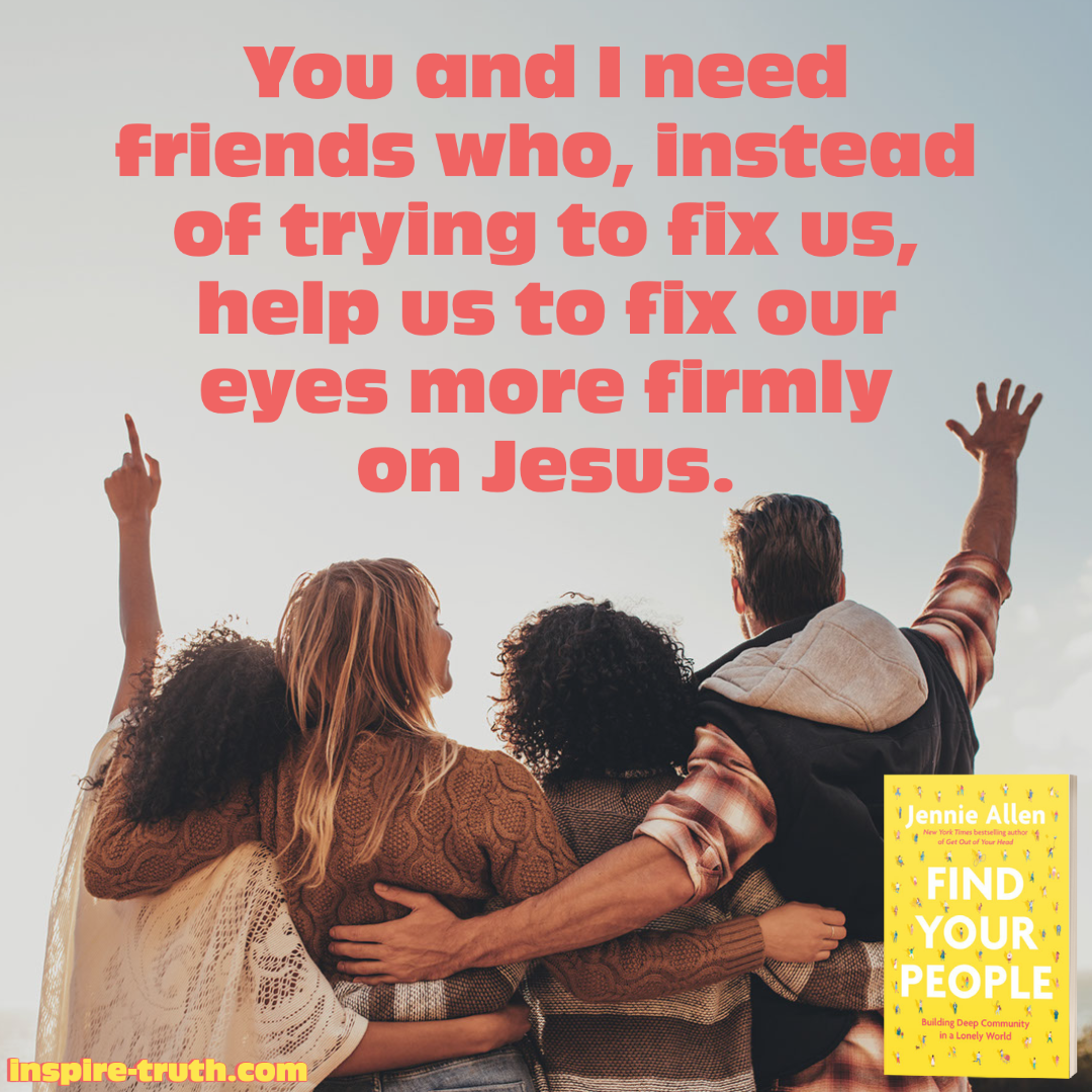 “You and I need friends who, instead of trying to fix us, help us to fix our eyes more firmly on Jesus.” ~ Jennie Allen