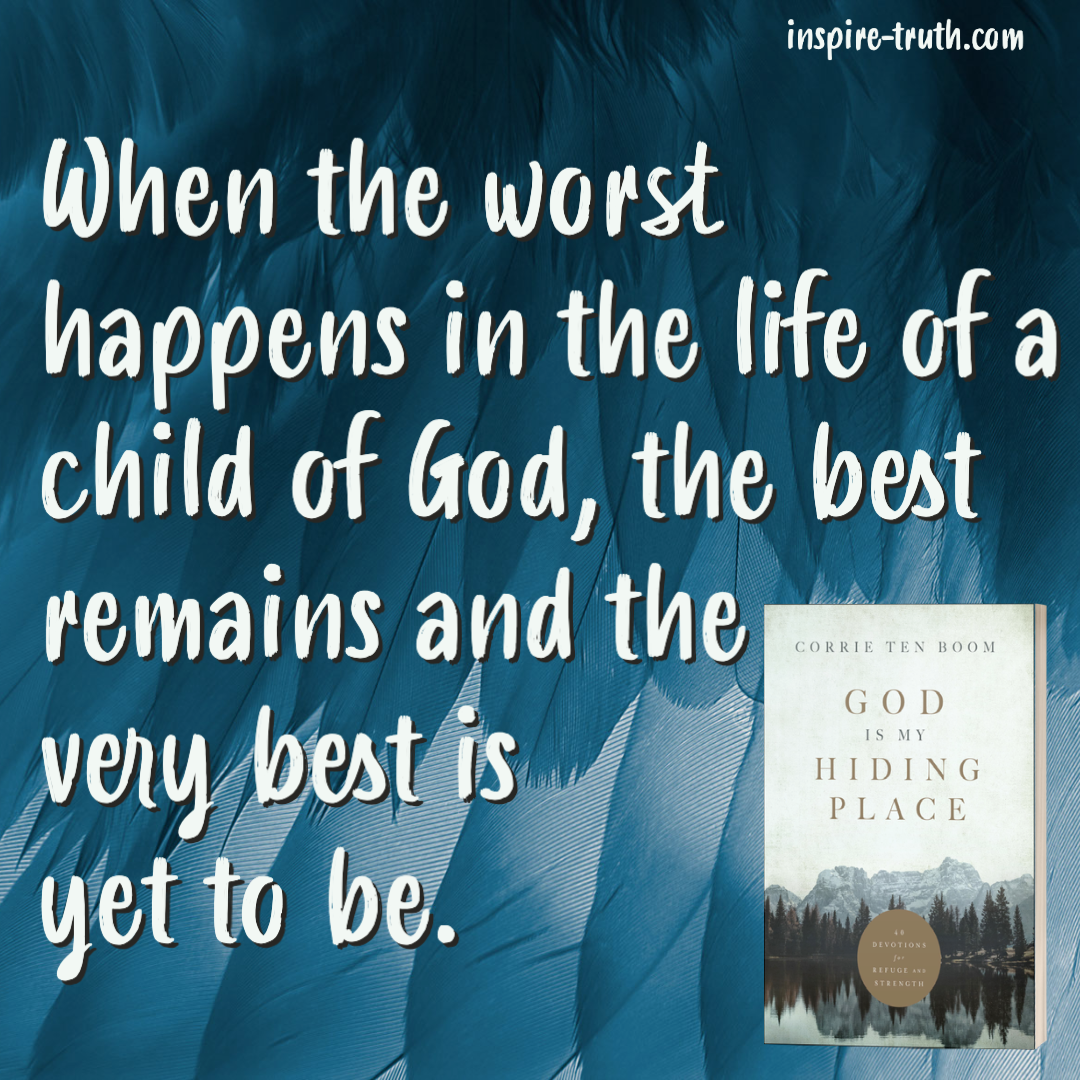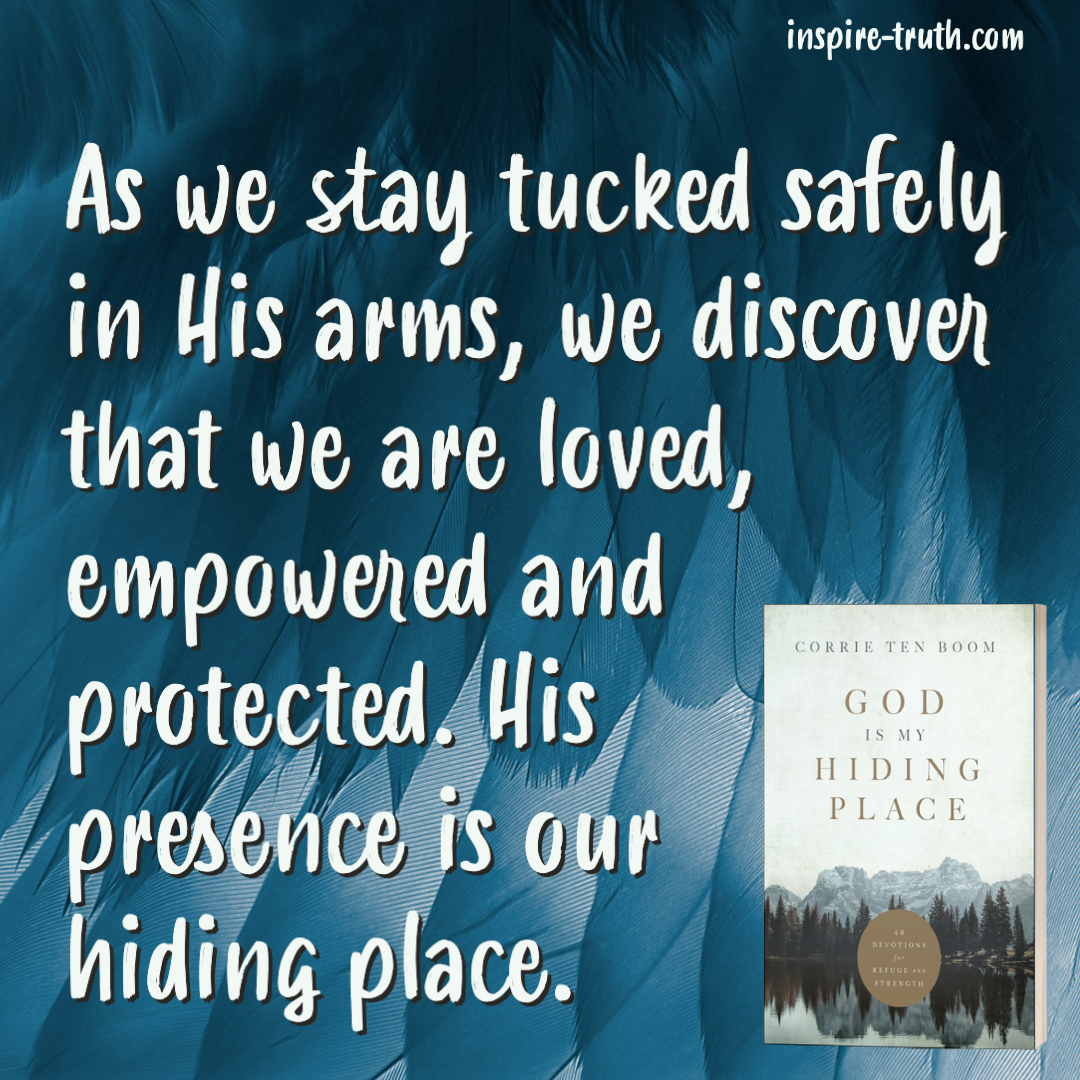 - As we stay tucked safely in His arms, we discover that we are loved, empowered and protected. His presence is our hiding place. ~ Corrie ten Boom