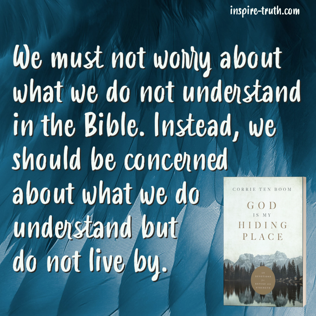 - We must not worry about what we do not understand in the Bible. Instead, we should be concerned about what we do understand but do not live by. ~ Corrie ten Boom