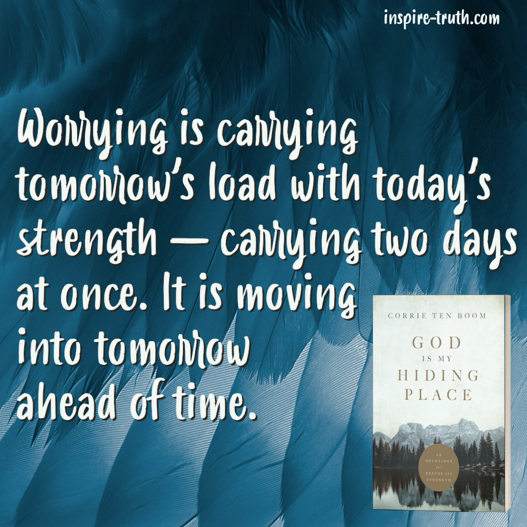 [yasr_multiset setid=0] Ages: 14+- Worrying is carrying tomorrow’s load with today’s strength—carrying two days at once. It is moving into tomorrow ahead of time. ~ Corrie ten Boom