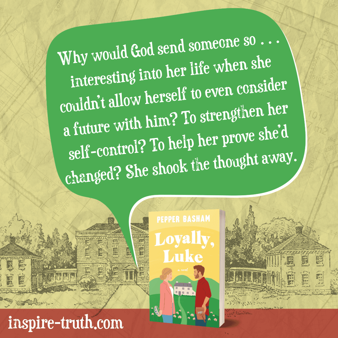 “Why would God send someone so . . . interesting into her life when she couldn’t allow herself to even consider a future with him? To strengthen her self-control? To help her prove she’d changed? She shook the thought away.” ~ Pepper Basham