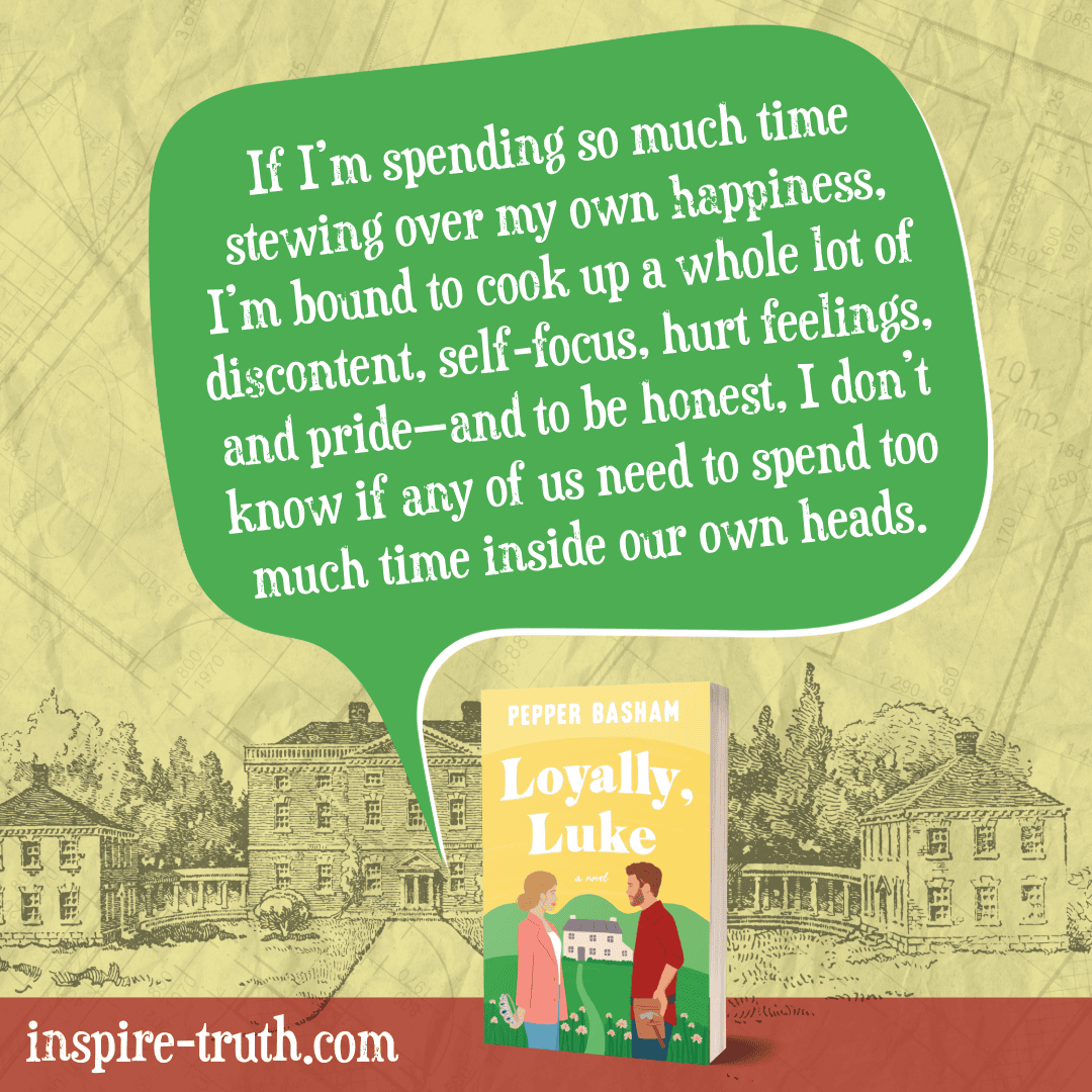 - “If I’m spending so much time stewing over my own happiness, I’m bound to cook up a whole lot of discontent, self-focus, hurt feelings, and pride—and to be honest, I don’t know if any of us need to spend too much time inside our own heads.”” ~ Pepper Basham