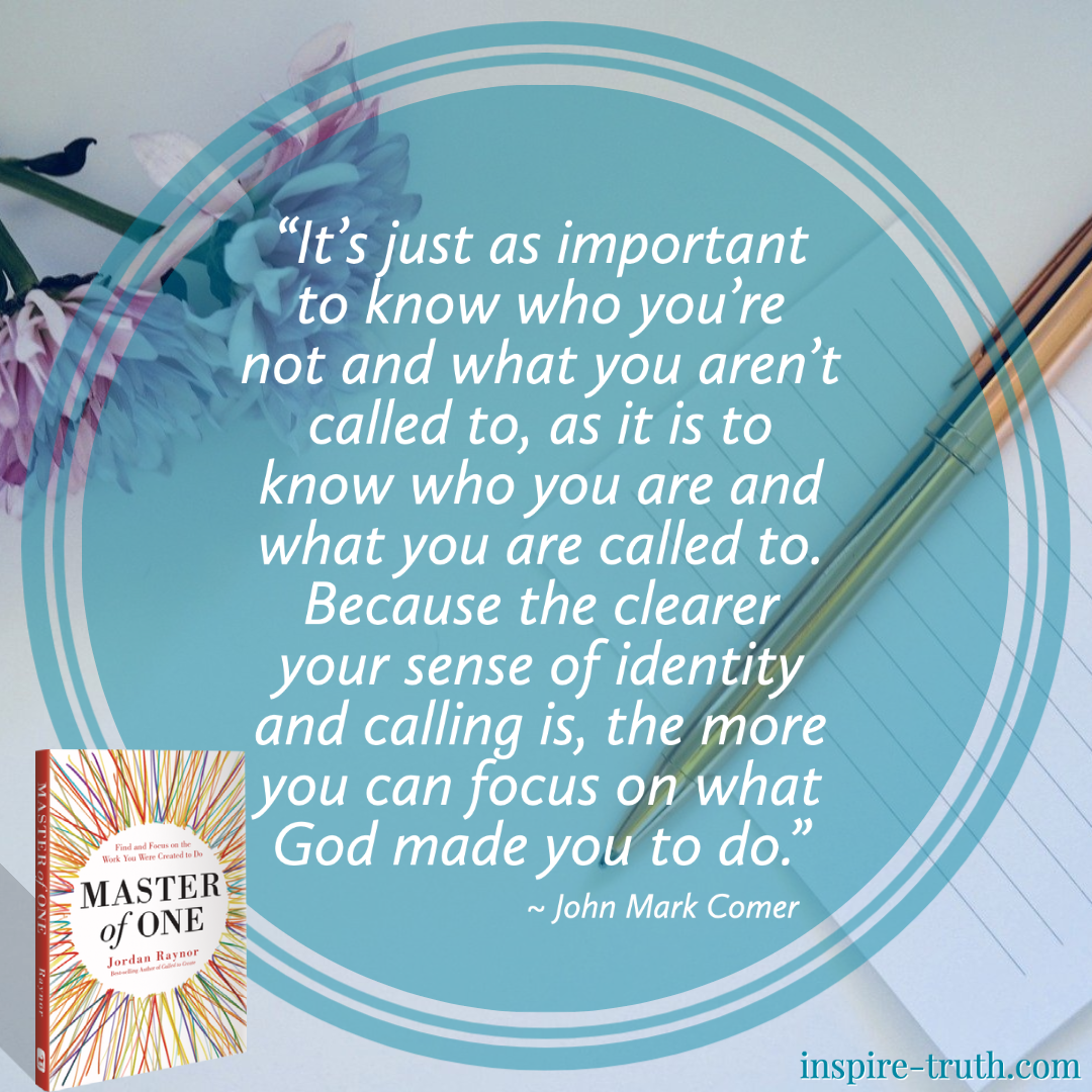 - “It’s just as important to know who you’re not and what you aren’t called to, as it is to known who you are and what you are called to. Because the clearer your sense of identity and calling is, the more you can focus on what God made you to do.” ~ John Mark Comer