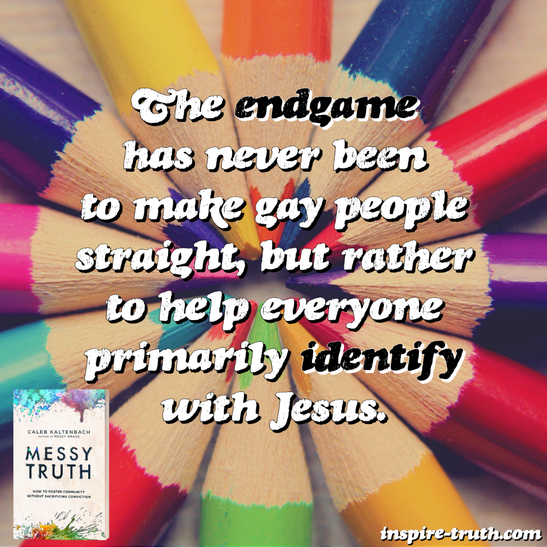 - “The endgame has never been to make gay people straight, but rather to help everyone primarily identify with Jesus.” ~ Caleb Kaltenbach