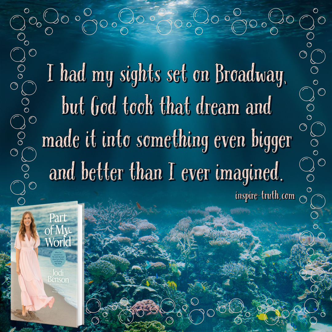- “I had my sights set on Broadway, but God took that dream and made it into something even bigger and better than I ever imagined.” ~ Jodi Benson