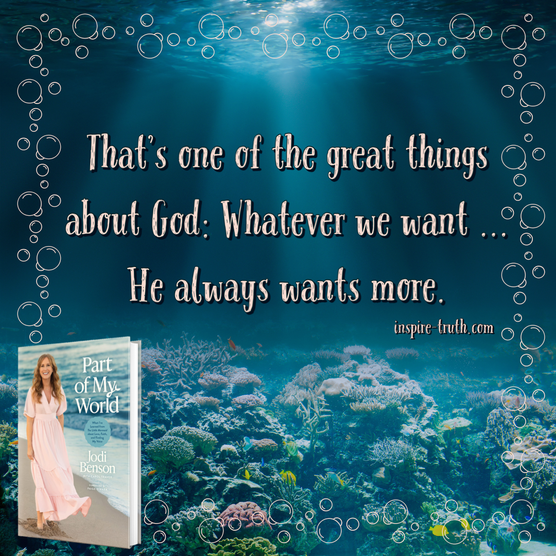 - “That’s one of the great things about God: Whatever we want . . . He always wants more.” ~ Jodi Benson