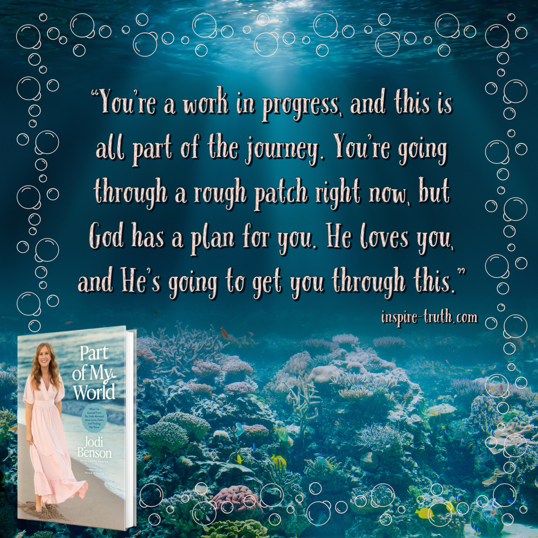 - “You’re a work in progress, and this is all part of the journey. You’re going through a rough patch right now, but God has a plan for you. He loves you, and He’s going to get you through this.” ~ Glen & Linda Keanes (Disney animator and friends of Jodi Benson)