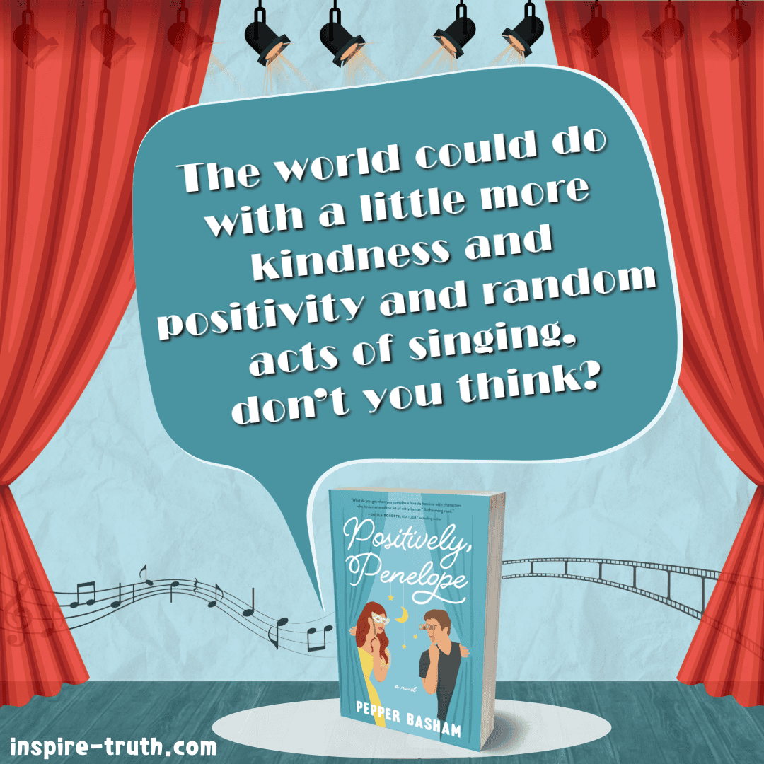 - “Besides, the world could do with a little more kindness and positivity and random acts of singing, don’t you think?” ~ Pepper Basham