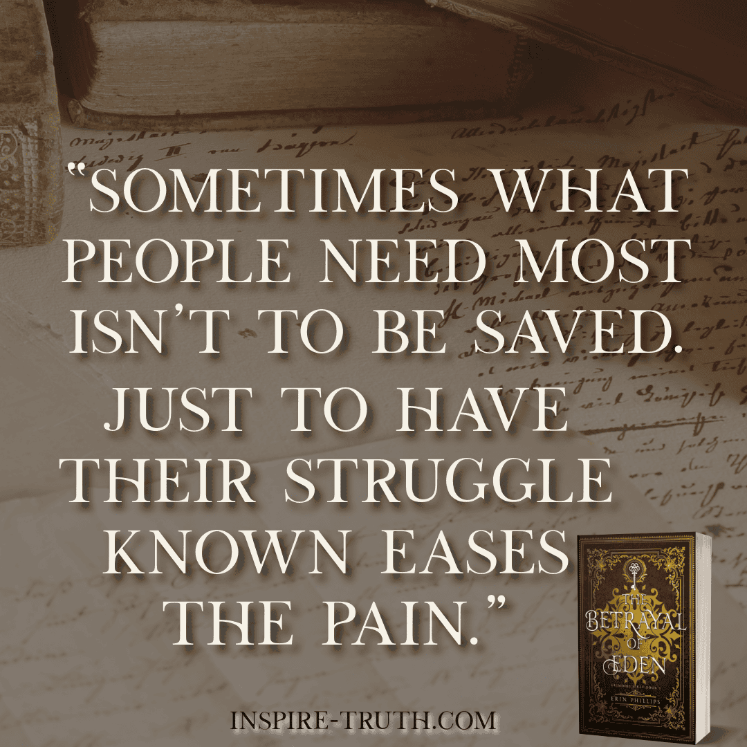 - “Sometimes what people need most isn’t to be saved. Just to have their struggle known eases the pain.” ~ Erin Phillips