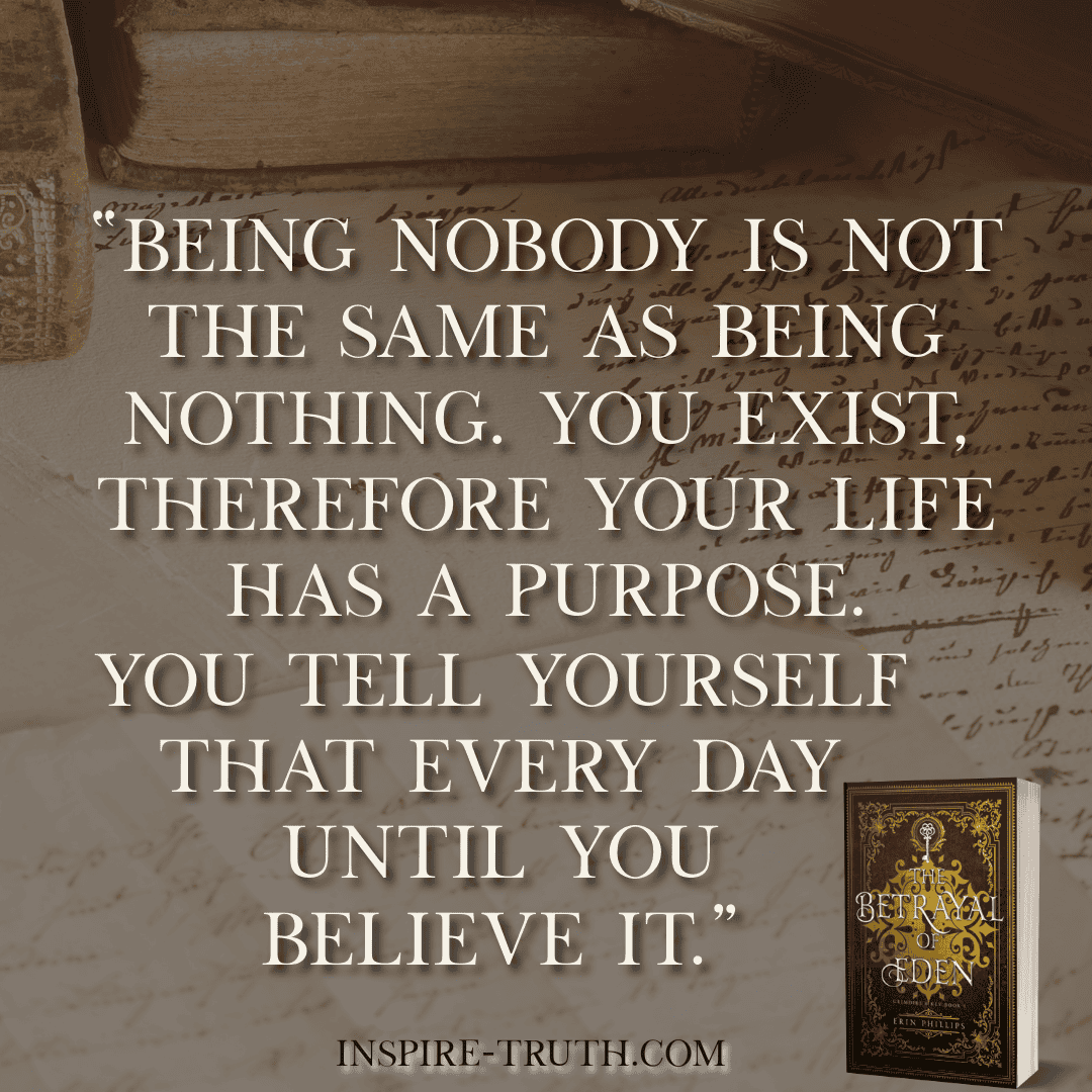 “Being nobody is not the same as being nothing. You exist, therefore your life has a purpose. You tell yourself that every day until you believe it.” ~ Erin Phillips