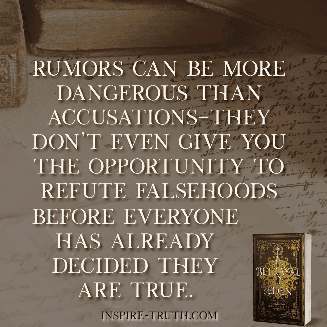 “Rumors can be more dangerous than accusations—they don’t even give you the opportunity to refute falsehoods before everyone has already decided they are true.” ~ Erin Phillips