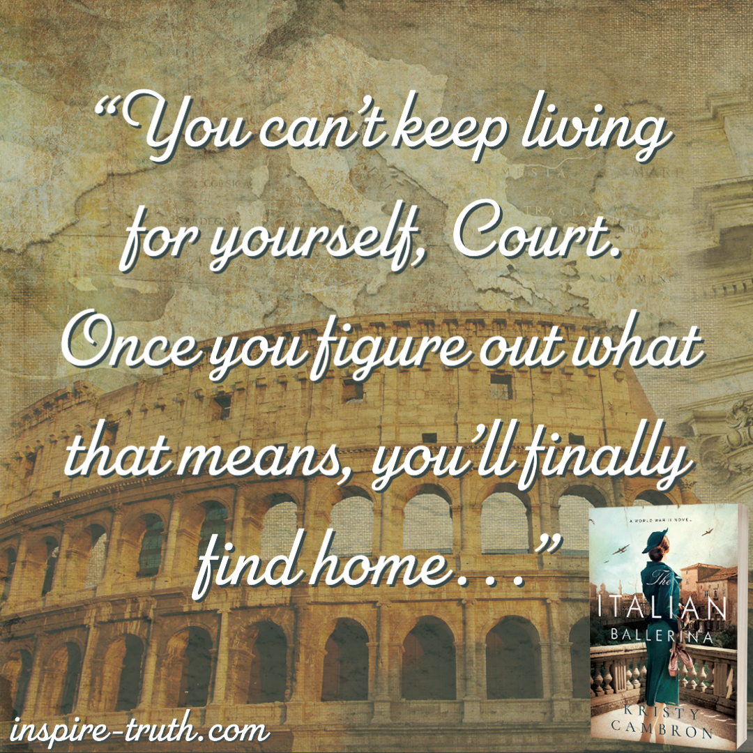 - “You can’t keep living for yourself, Court. Once you figure out what that means, you’ll finally find home . . .”~ Kristy Cambron