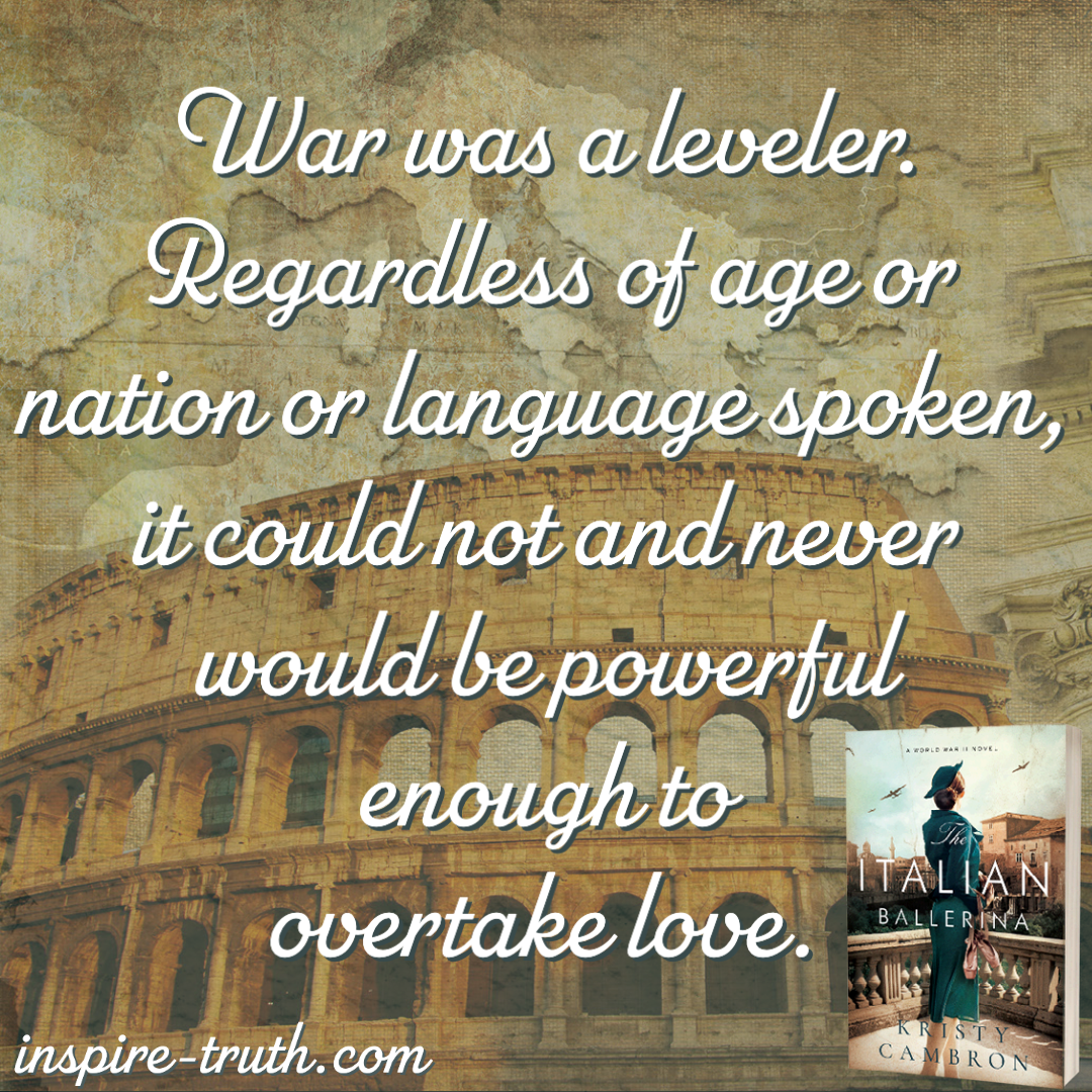 - “War was a leveler. Regardless of age or nation or language spoken, it could not and never would be powerful enough to overtake love.”~ Kristy Cambron