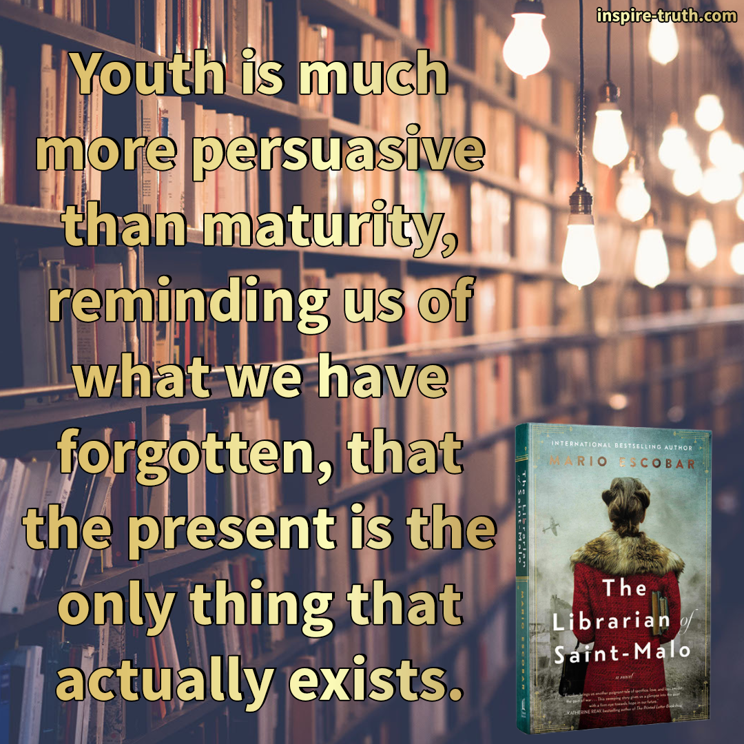 - “Youth is much more persuasive than maturity, reminding us of what we have forgotten, that the present is the only thing that actually exists.” ~ Mario Escobar