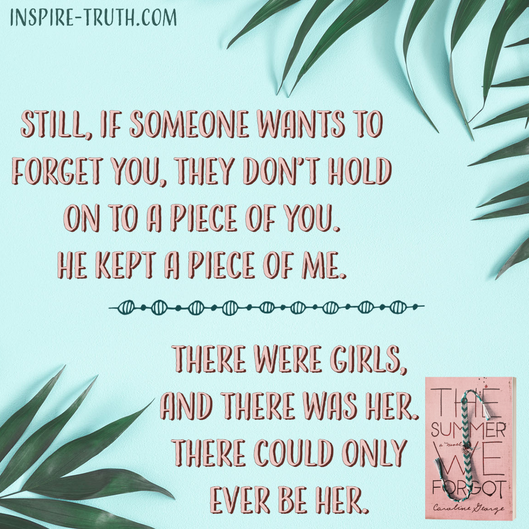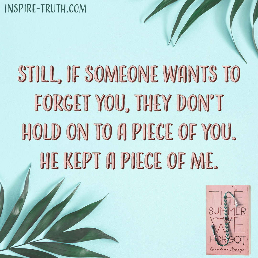 - “Still, if someone wants to forget you, they don’t hold onto a piece of you. He kept a piece of me.” ~ Caroline George