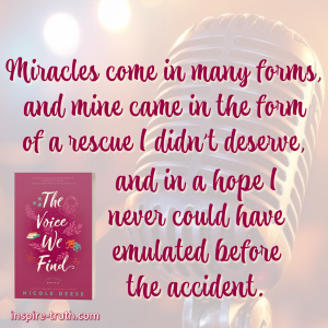 “Miracles come in many forms, and mine came in the form of a rescue I didn’t deserve, and in a hope I never could have emulated before the accident.”~ Nicole Deese