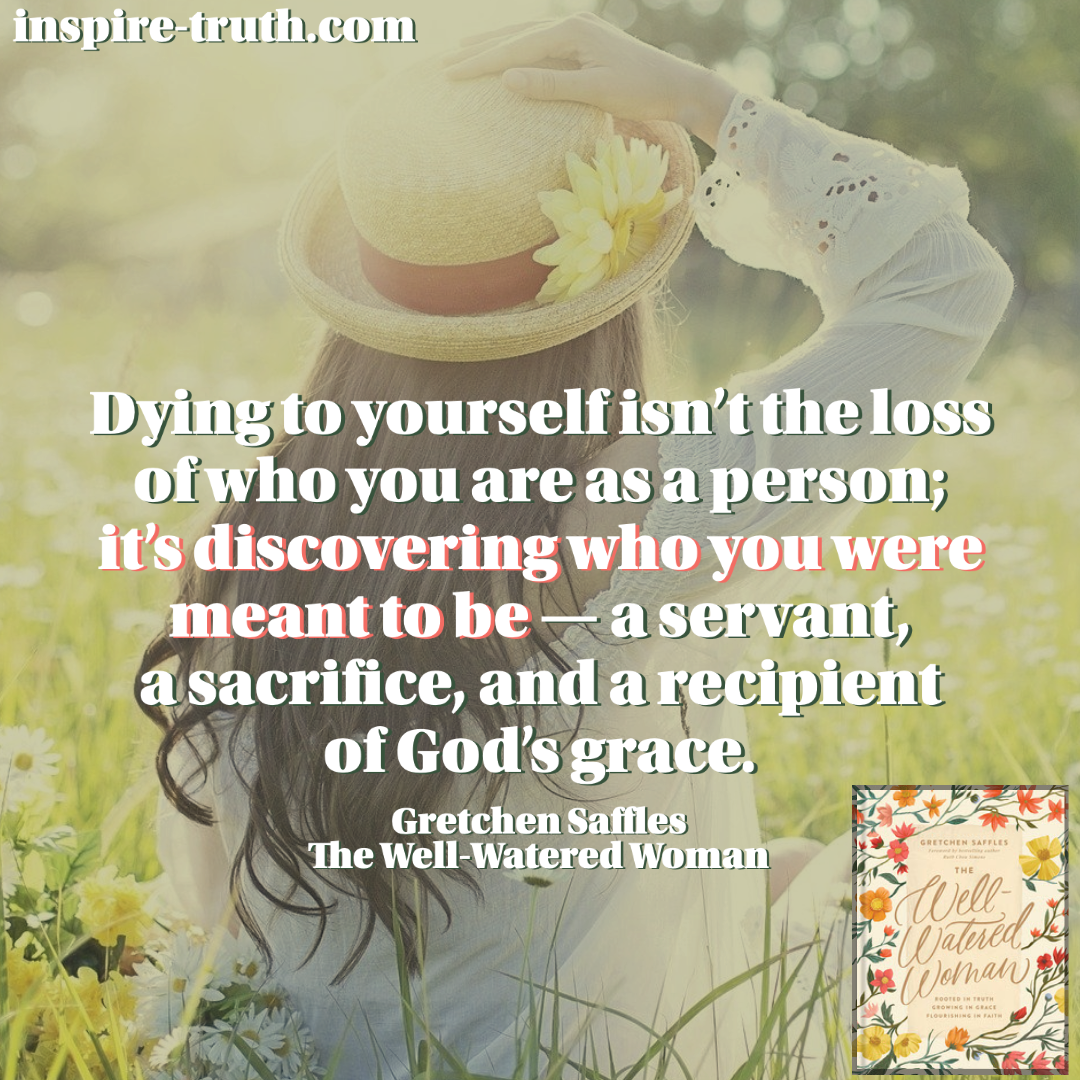 “Dying to yourself isn’t the loss of who you are as a person; it’s discovering who you were meant to be—a servant, a sacrifice, and a recipient of God’s grace.” ~ Gretchen Saffles