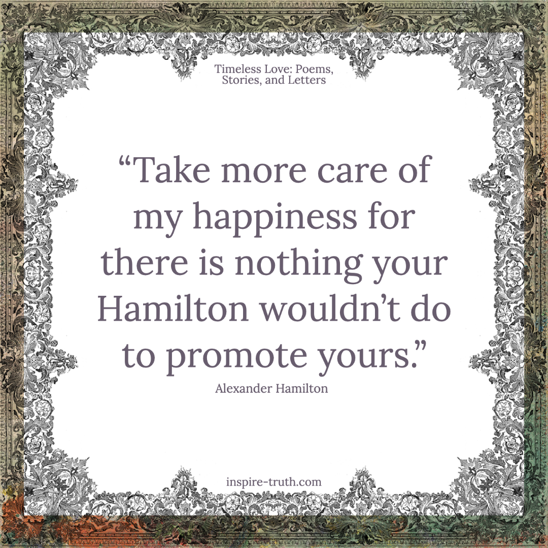 - “Take more care of my happiness for there is nothing your Hamilton wouldn’t do to promote yours.” ~ Alexander Hamilton
